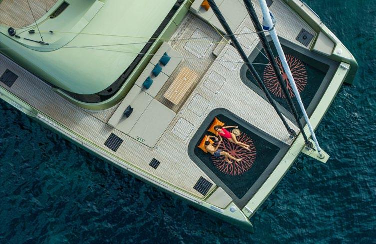 Simple, yet stylish, her green exterior has been designed to blend in perfectly with lush mediterranean backdrops. Eye-catching, without being garish, she is the perfect choice for those seeking a beautifully original catamaran.