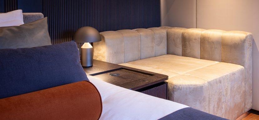 Mirrored walls make the rooms feel spacious, while atmospheric mood lighting ensures they remain cosy and comfortable.