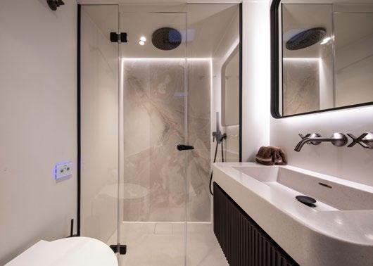 The modern bathrooms are slick and stylish, offering hotel-levels of luxury on board.