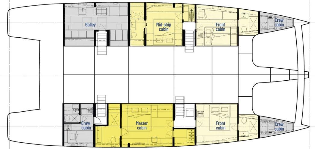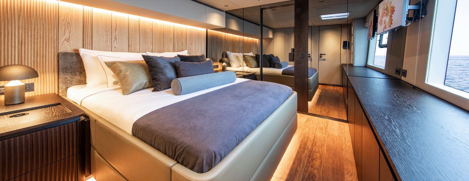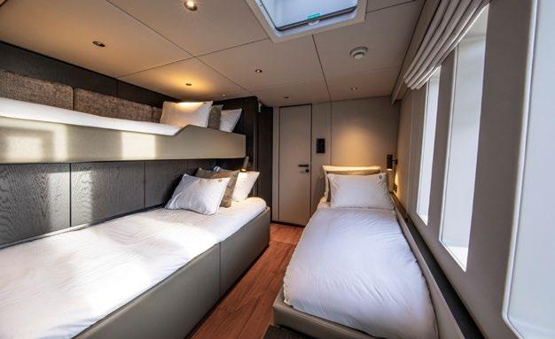 Up to 9 guests can be accommodated across 4 beautifully appointed cabins, including one master cabin, one VIP cabin, one convertible cabin and one with a bunk bed and single bed.