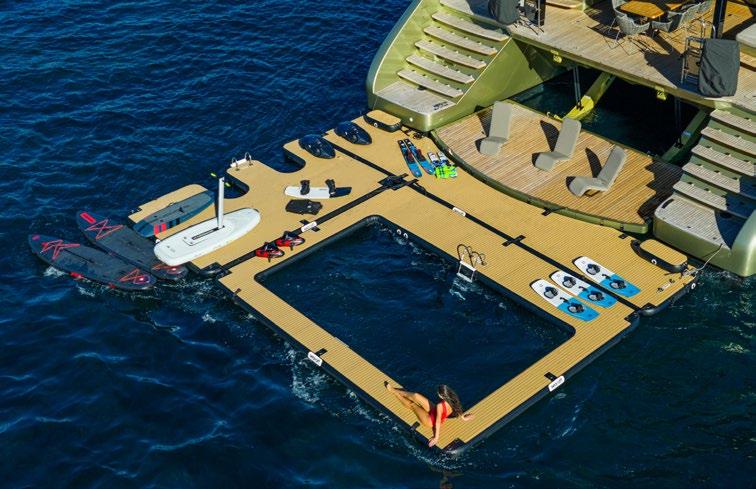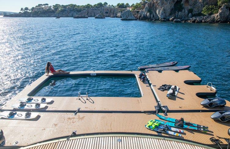 A-PLAN is brimming with outdoor space. Her lower deck boasts multiple outdoor seating areas, including sun loungers and trampolines.
