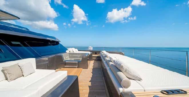 Its interior offers a fresh and inviting atmosphere. Designed by the renowned Stefano Righini, with luxurious interiors by Carlo Galeazzi, the yacht blends elegance with functionality.
