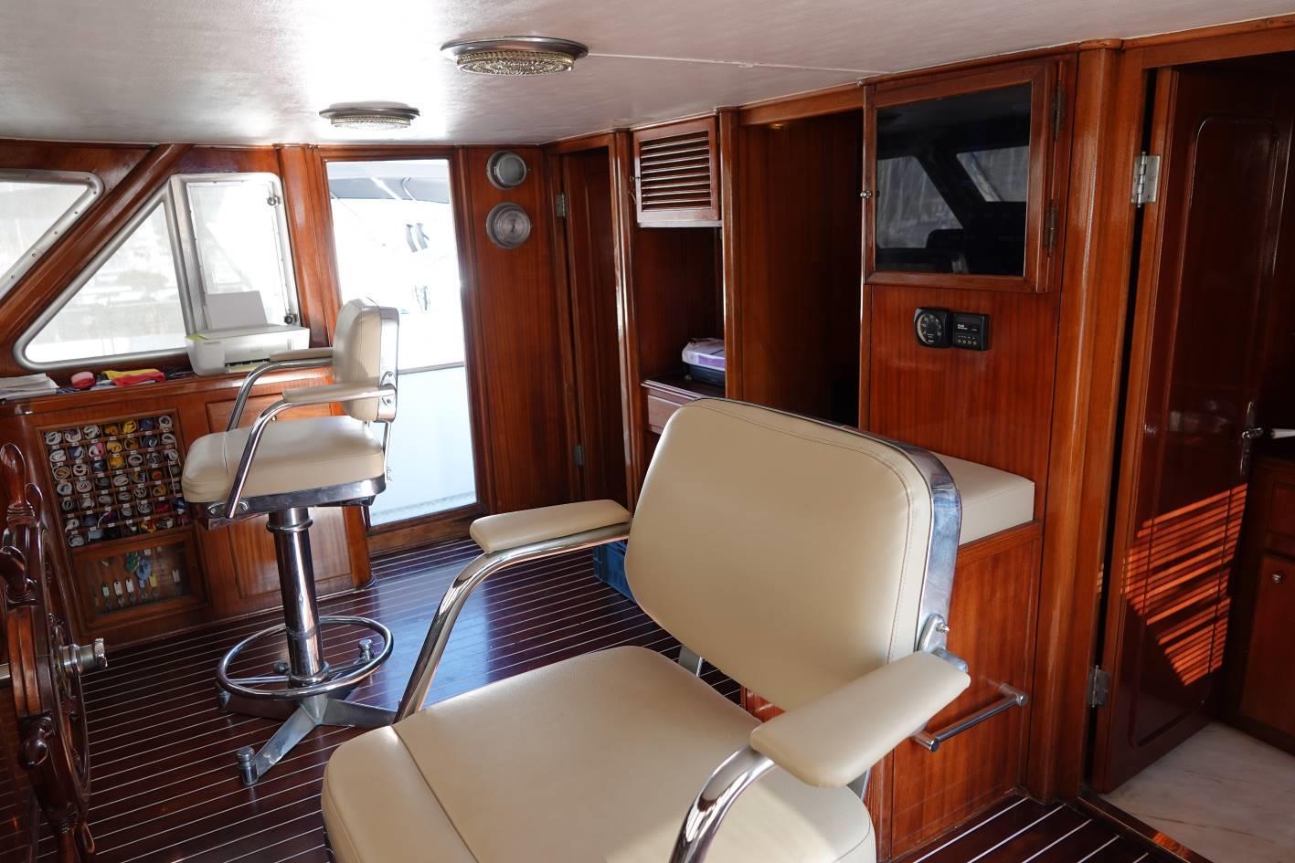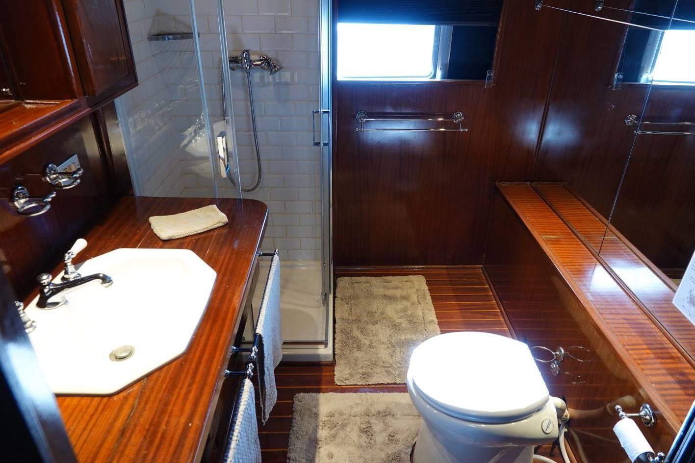 Access by stair next to the galley Spacious navigation station with access to the upper deck outside and to the main deck inside 2 chairs and 1 sofa Ensuite bathroom