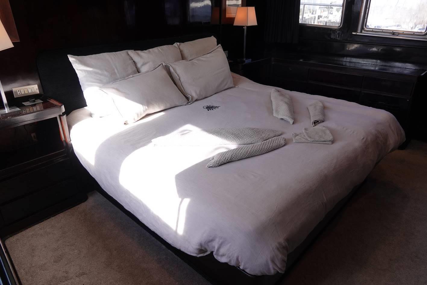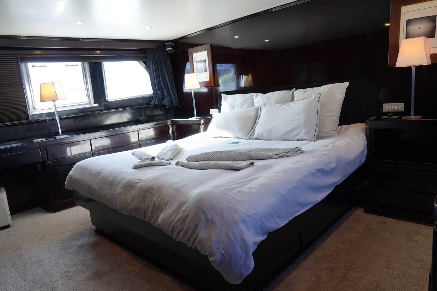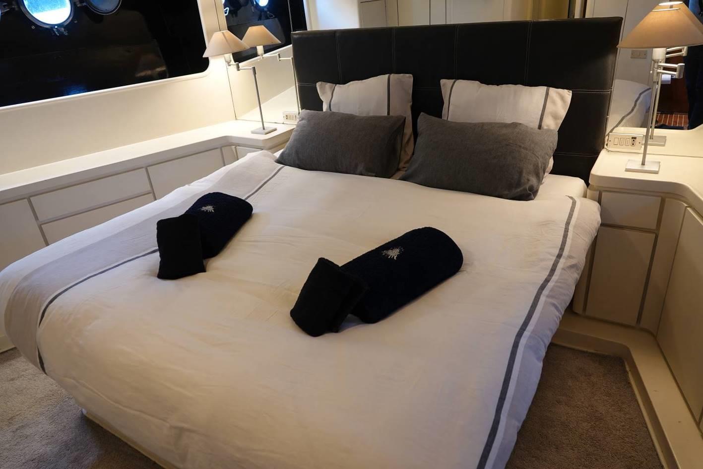 • Owner’s stateroom on the main deck up front with King size bed, ensuite bathroom, dressing room and large screen TV