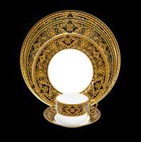 Motifs de papyrus, palmes et chapiteaux, relevés d’une frise dorée appliquée à la main, composent une collection où le raffinement rencontre l’usage, pour sublimer les gestes du quotidien ou offrir un cadeau d’exception.