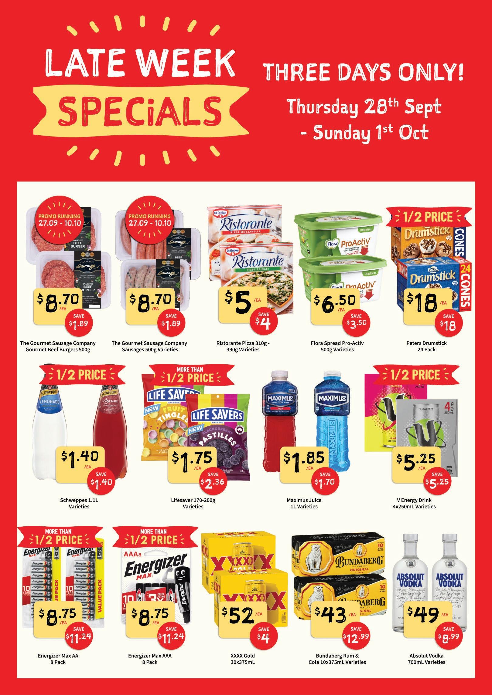 SUPER SAVER | PANTRY SPECIALS 5 Did you know we use local businesses such as Scott Welshs Transport, Gunns Menswear for ALL our uniforms, Blayney Foods for distribution and MORE Gravox Gravy Liquid 165g Varieties SUPER SAVER | CLEANING, HEALTH & BEAUTY Kellogg’s Corn Flakes 380g Varieties Masterfoods Sauce Squeezy 500mL Varieties Palmolive Dishwashing Liquid 950mL Varieties Pine O Cleen Multi Purpose Cleaner 750mL Varieties Vegemite 380g Varieties Praise Dressings 330mL Varieties Moccona Freeze Coffee Dried 400g Varieties Arno ’s Chocolate Tim Tam 200g Varieties $6 SAVE $2.50 /EA $19.50 SAVE $8.50 $4.88 per 100g /EA $4 SAVE $1.55 $1.05 per 100g /EA $2.50 SAVE $1.30 $5 per L /EA $3.50 SAVE $1 $1.75 per 100g /EA $2.50 SAVE $1.10 /EA $7.58 per L Uncle Tobys Plus Cereal 410-435g Varieties $3.25 SAVE $3.25 /EA 1/2 PRICE $5.80 SAVE $1.80 $1.53 per 100g /EA $2.80 SAVE 70¢ $1.70 per 100g /EA Dynamo Laundry Liquid 1.8-2L Varieties 1/2 PRICE $14.50 SAVE $14.50 /EA $4.90 SAVE $2.10 /EA $6.53 per L Vanish Gold Oxi Pro 2kg Varieties $16 SAVE $16 $8 per kg /EA 1/2 PRICE