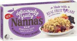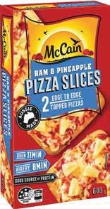 FREEZER SPECIALS | Super Saver We stock over 30 locally produced products from other family owned businesses across NSW KEEP IN THE FRIDGE | SUPER SAVERS Nanna’s Apple Crumble 550g Varieties Peters Multi Pack Drumsticks 4-6 Pack Varieties On The Menu Frozen Meal 400g Varieties Sara Lee Desserts 475-600g Varieties Mrs Mac’s Pies 4 Pack 700g Varieties 1/2 PRICE SAVE $1 $7.27 per kg /EA $4 $7 SAVE $2.50 $10 per kg /EA SAVE $4.75 /EA $4.75 McCain Pizza Slices 600g Varieties Connoisseur Ice Cream 1L Varieties SAVE $2 $11.67 per kg /EA $7 $4 SAVE $2 $10 per kg /EA McCain Frozen Chips 750g Varieties SAVE $1.10 $5.60 per kg /EA $4.20 SAVE $1.70 /EA $6.80 SAVE $3 $9 per L /EA $9 Pauls Custard 170g Varieties Zoosh Dip 185g Varieties Primo Bacon Short Rindless 750g $2.50 SAVE 50¢ $14.71 per kg /EA $2.50 SAVE 50¢ $13.51 per kg /EA $10.50 SAVE $5 $14 per kg /EA