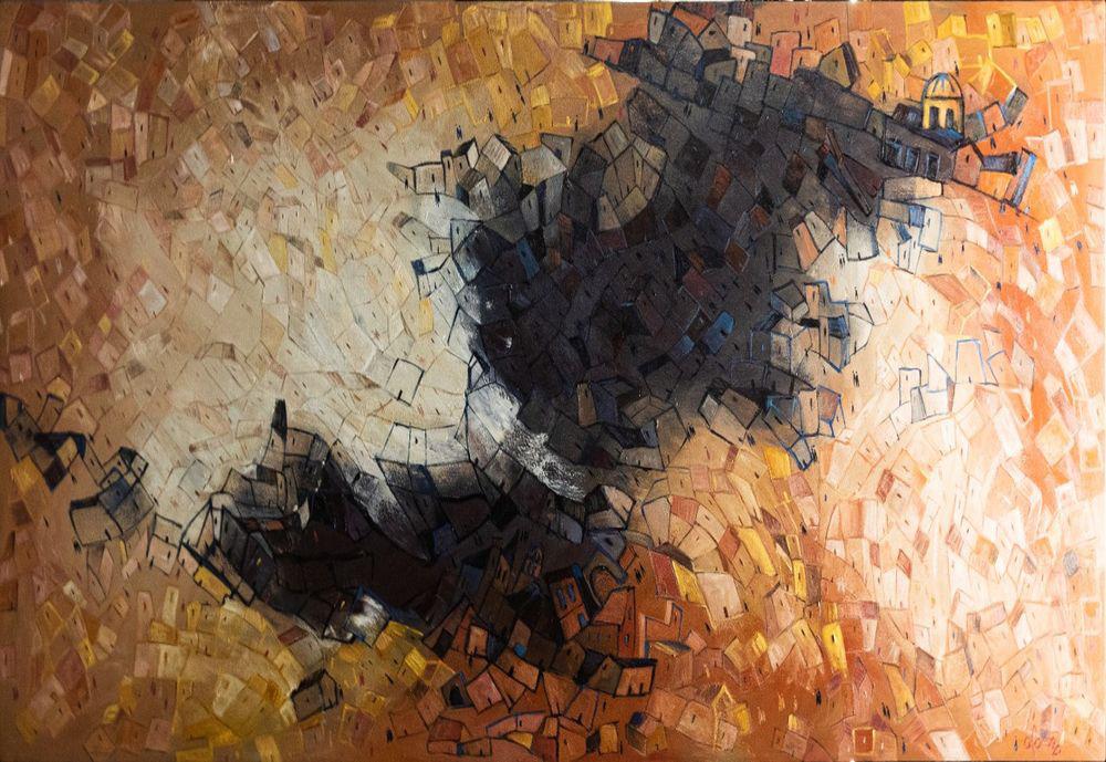 Óleo, acrílico, hoja de oro sobre lienzo firmado con certificado 110 x 160 cm (con marco)