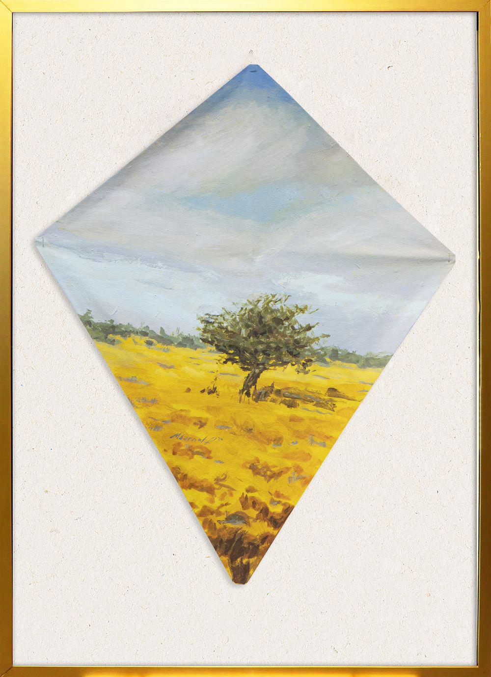 Óleo y hoja de oro sobre masonite firmado con certificado 46 x 68 cm (con marco)