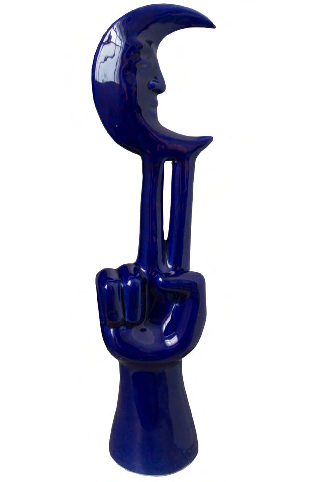 “MANO LUNA AZUL MARINO” Escultura de cerámica firmado con certificado 41 x 9 x 9 cm Galería Querétaro