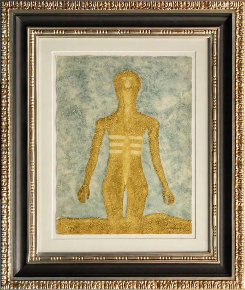 “VIENTO SUR” Resina con hoja de oro y óleo firmado con certificado 201 x 40 x 60 cm Galería Querétaro