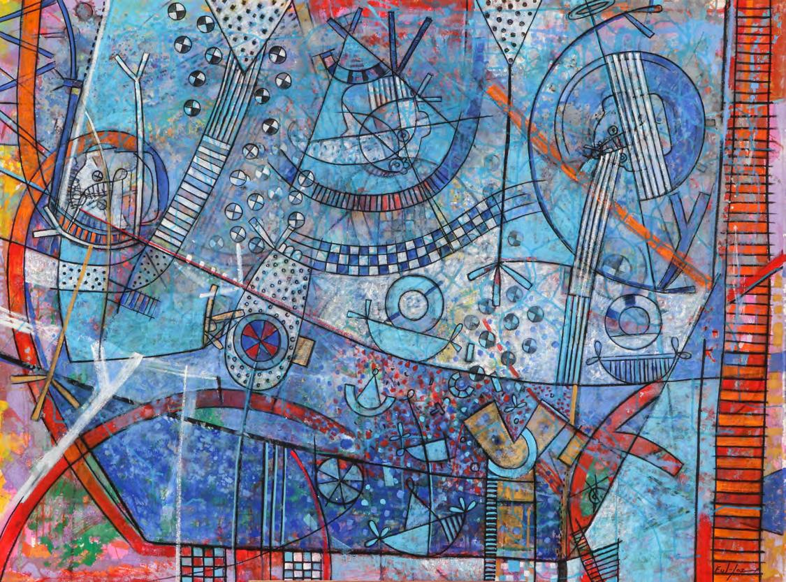 color” LOTE 3 Salida: $65,000 MXN Estimado: $130,000 MXN Olga Hdz “MI MUNDO AZUL” Acrílico y tintas sobre lienzo firmado con certificado 240 x 90 cm (sin marco) Galería Querétaro