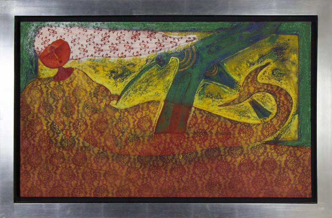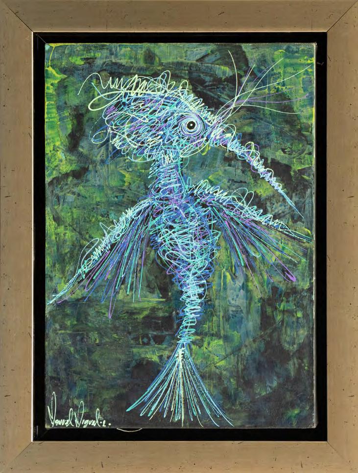 obras pueden presentar detalles de conservación, variación ligera de medidas o color” LOTE 383 Salida: $8,000 MXN Estimado: $20,000 MXN Stefanie Schikora “PIES MOJADOS” Mixta firmado con certificado 37 x 42 cm (Con marco) Galería Querétaro