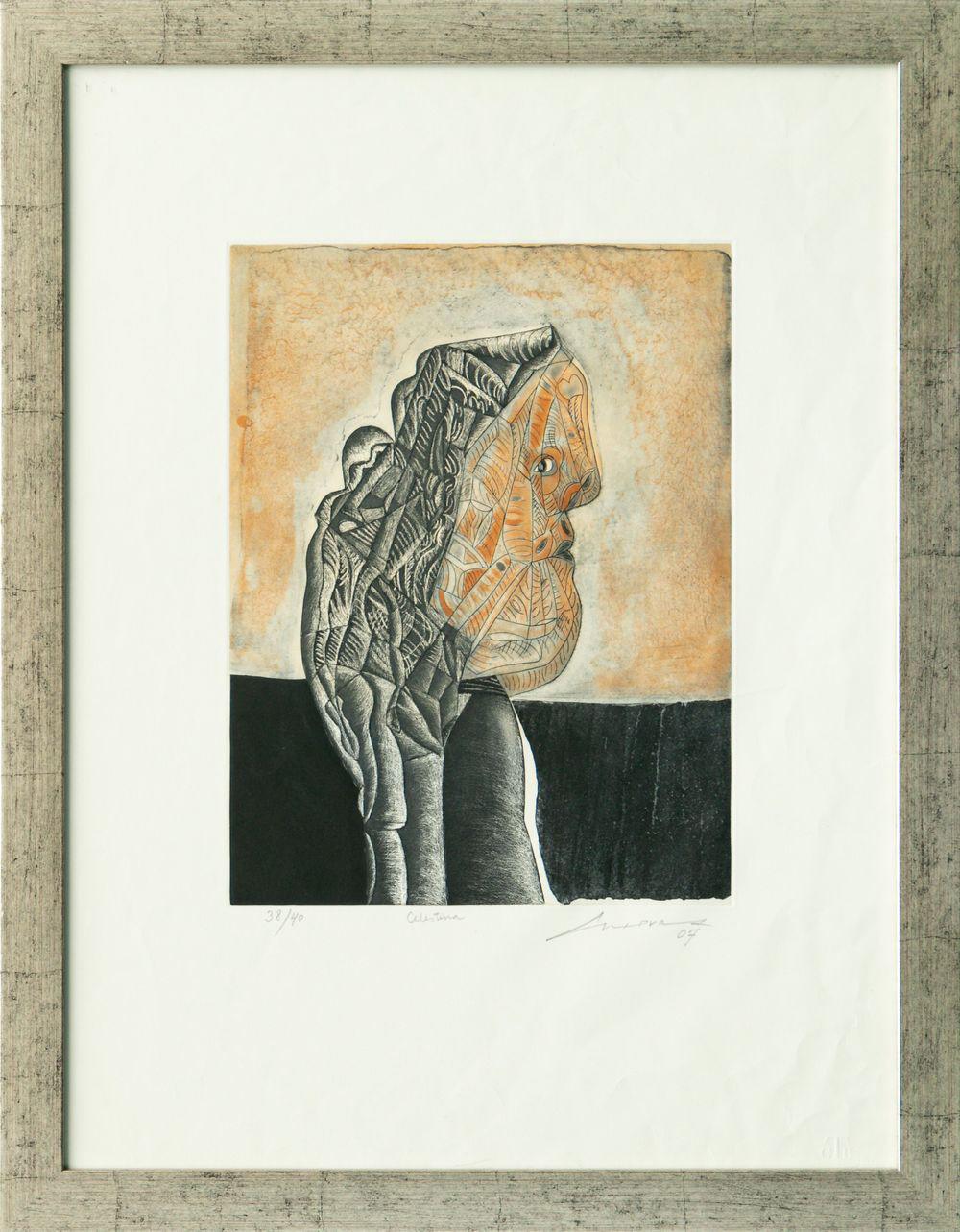 Litografía en papel deponte hecho a mano firmado con certificado de artista
