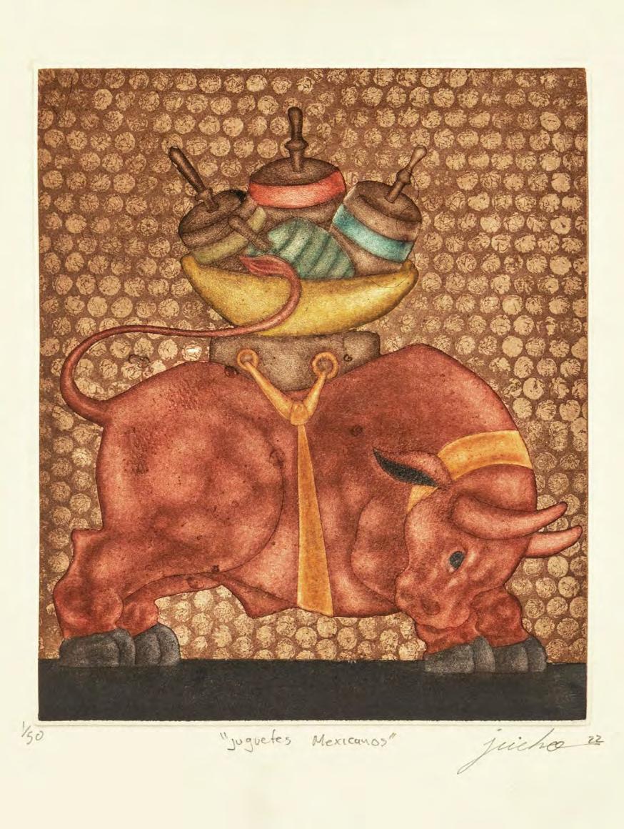 Litografía offse t: la imagen entintada en una superficie plana se imprime en un contracilindro cubierto con caucho y de este se transfiere al papel; las tintas para offset son translúcidas, lo que permite que al imprimir una tinta encima de otra, los colores se sumen. Mixografía: la matriz es de cobre fundido en relieve negativo que es entintado y en él se extiende pasta de papel y se introduce en una prensa, el resultado son estampas con textura y detalles a lo largo de la superficie.