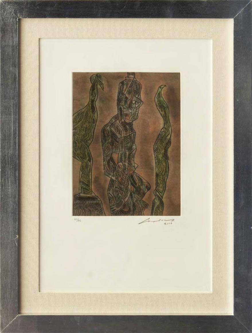 De la serie Rufino Tamayo 15 aguafuerte 1980, editada e impresa en papel guarro por ediciones Polígrafa, Barcelona firmada y númarada 65/99 con crayón con certificado 121 x 112 cm (con marco)