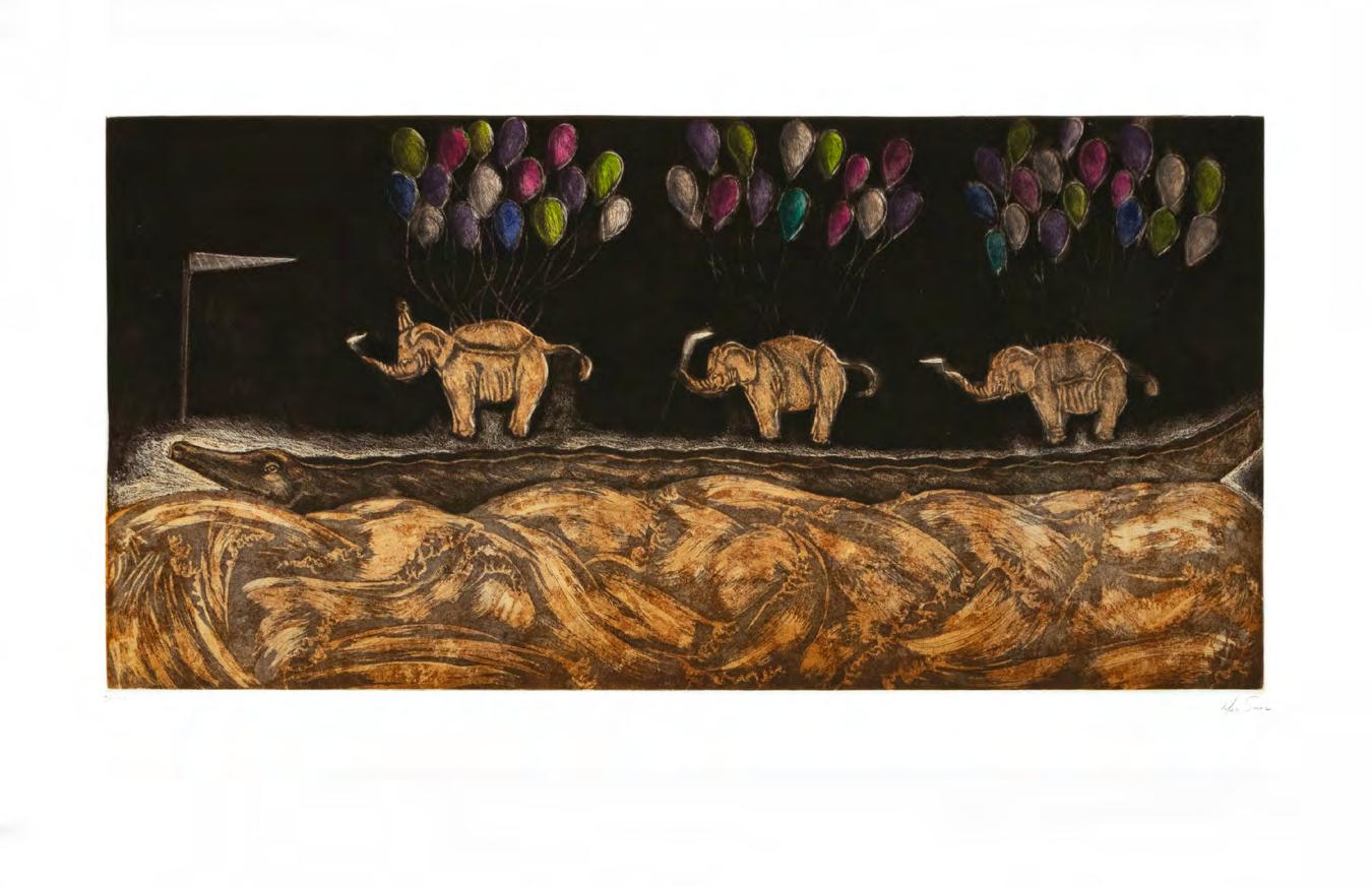 Colografía con aplicaciones de hoja de oro numerada con certificado 135 x 104 (con marco)
