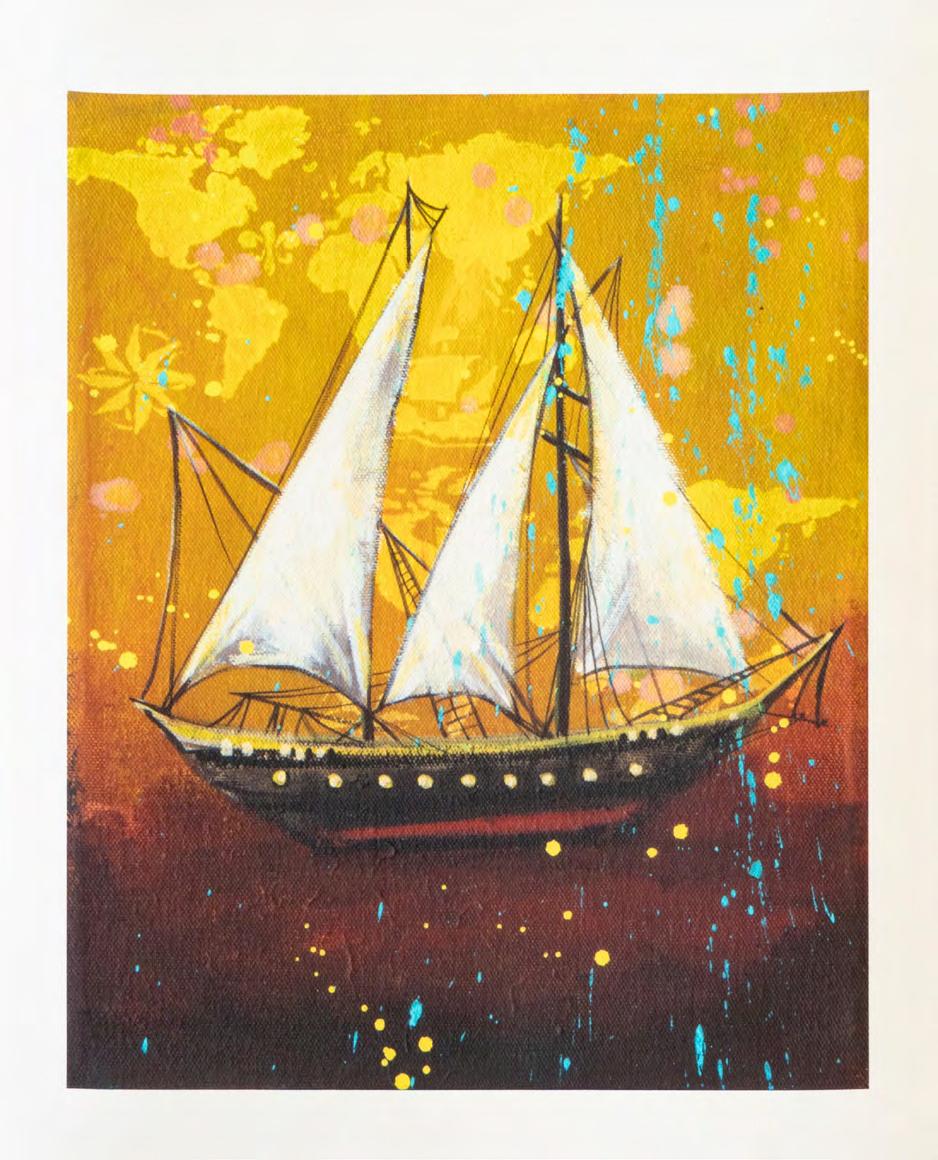 Xilografía, serigrafía y hoja de oro numerada con certificado 55 x 68 cm (sin marco) Colección privada