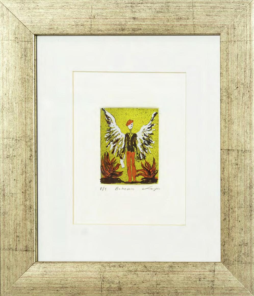 Xilografía, serigrafía y hoja de oro numerada con certificado 52 x 61 cm (sin marco)