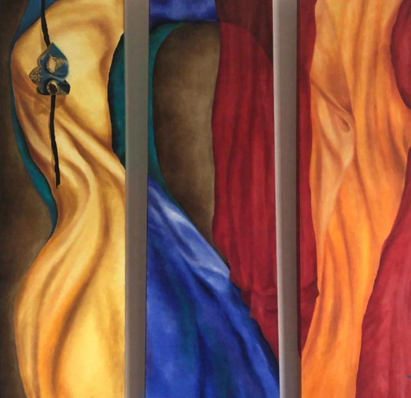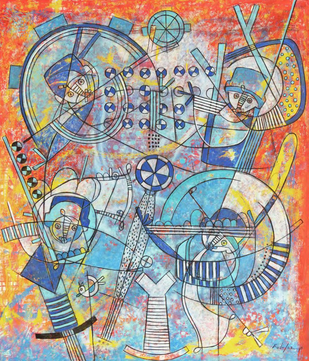 Marcela de la Toba “CONCIERTO DE GUITARRAS” Mixta sobre lienzo firmado con certificado 130 x 210 cm (con marco)