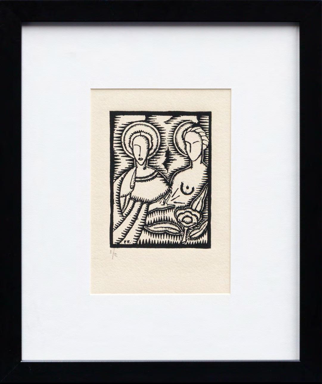 Linograbado firmado, catalogado en el libro de Frida Kahlo con certificado 36 x 30 cm (con marco)