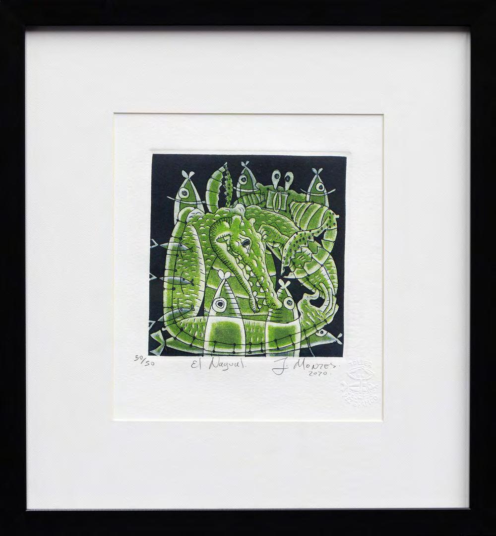 Ixrael Montes “EL NAGUAL” Grabado en aguafuerte, aguatinta firmado con certificado 42 x 40 cm (con marco)