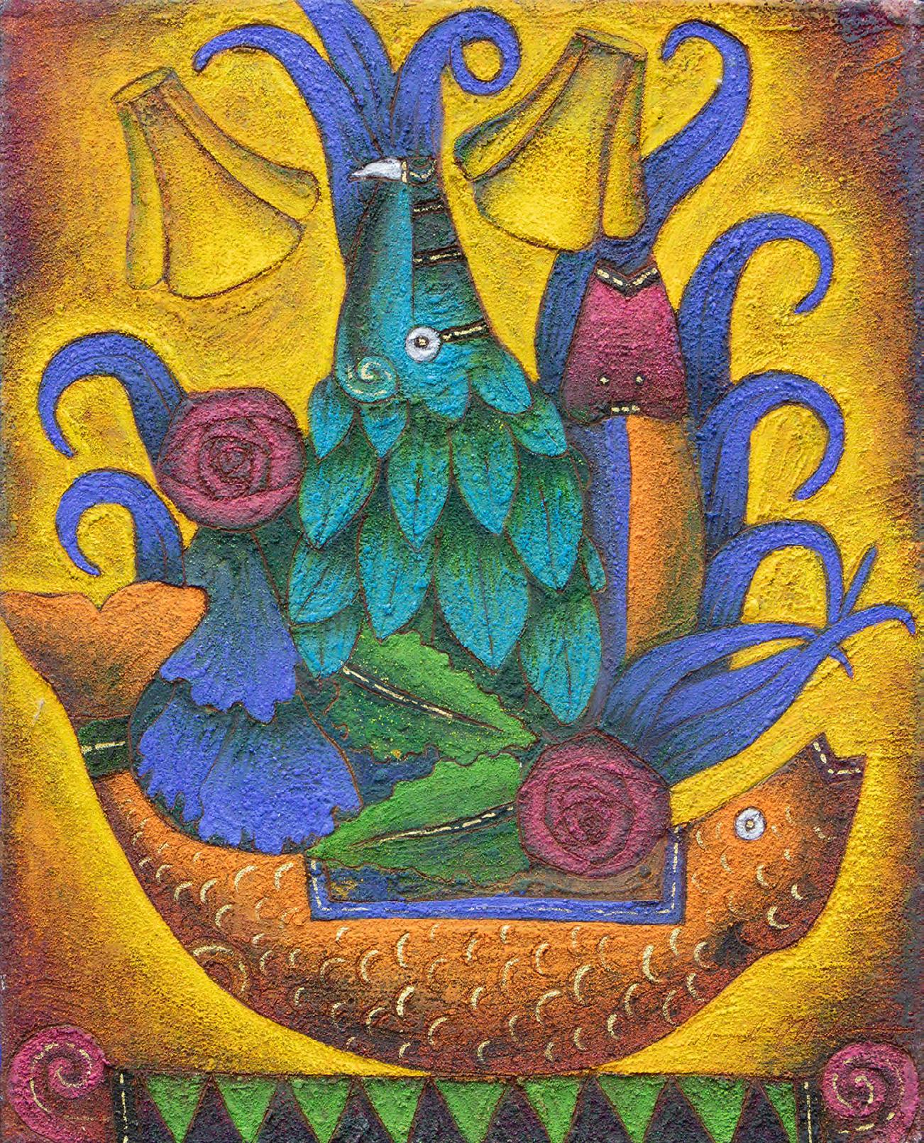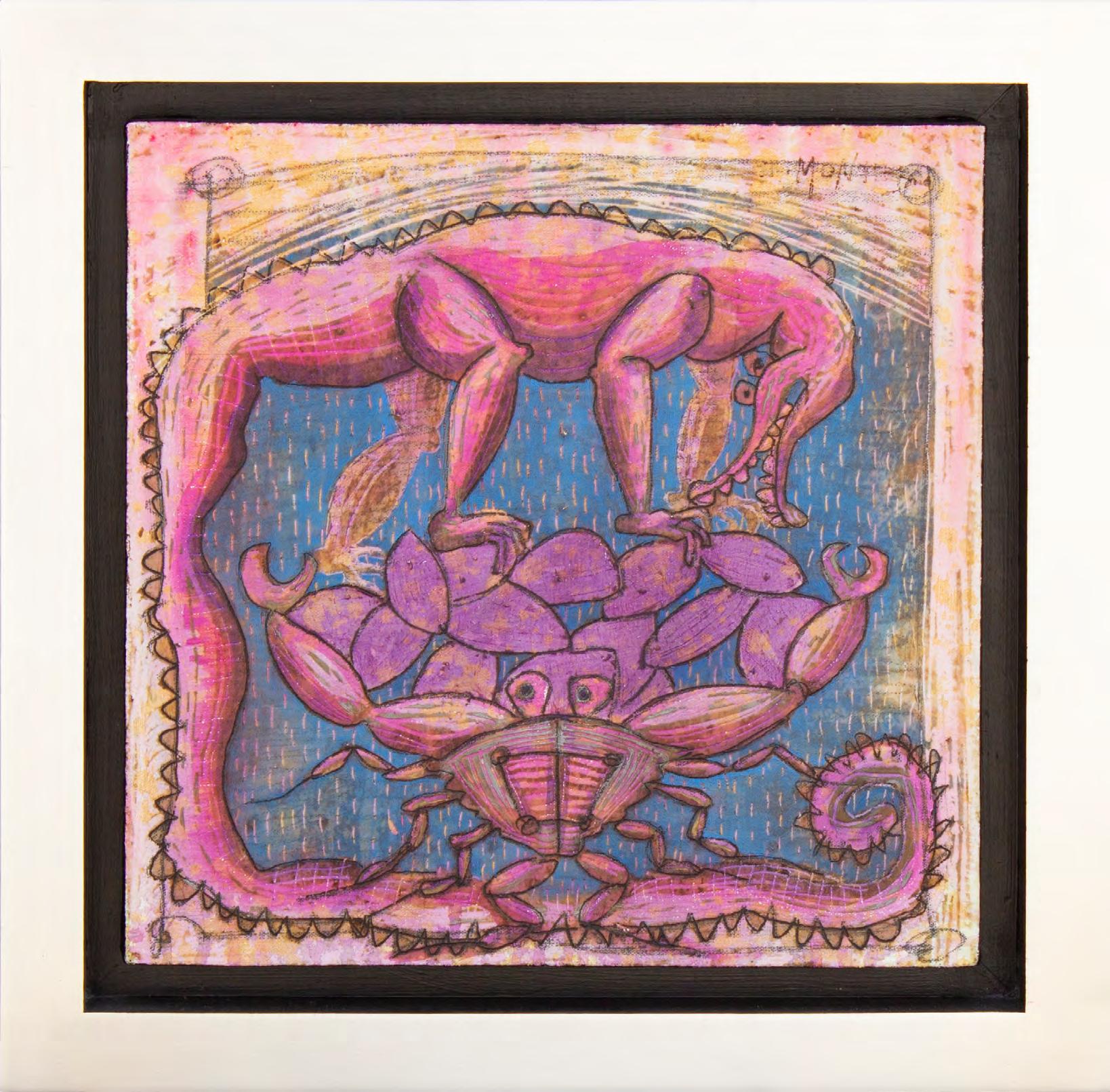 Mixta sobre madera firmado con certificado 42 x 42 cm (con marco)