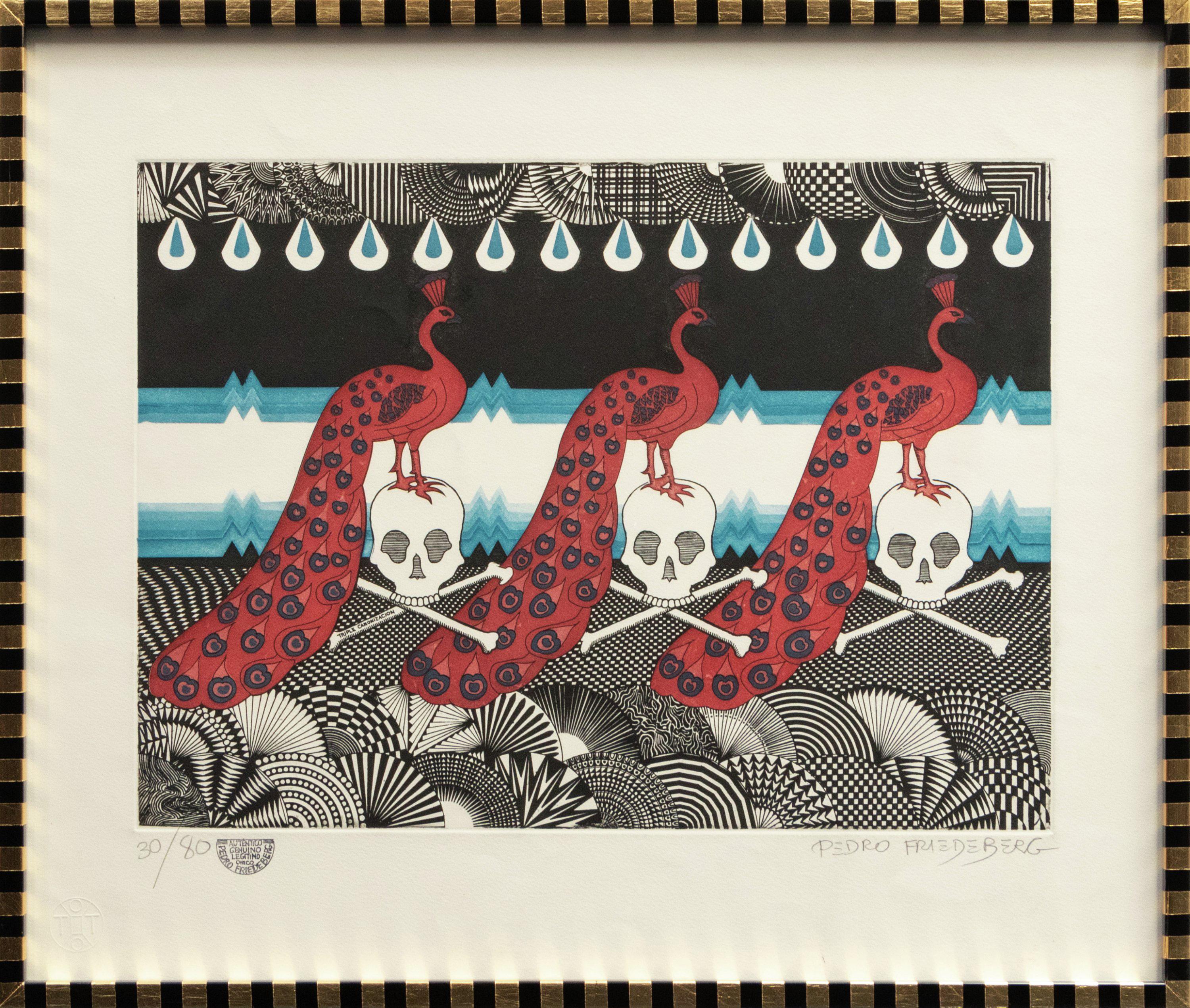 Carlos Rodríguez “PAVO REAL” Linograbado y acuarela firmado y numerado con certificado 47 x 32 cm (sin marco) Galería Querétaro