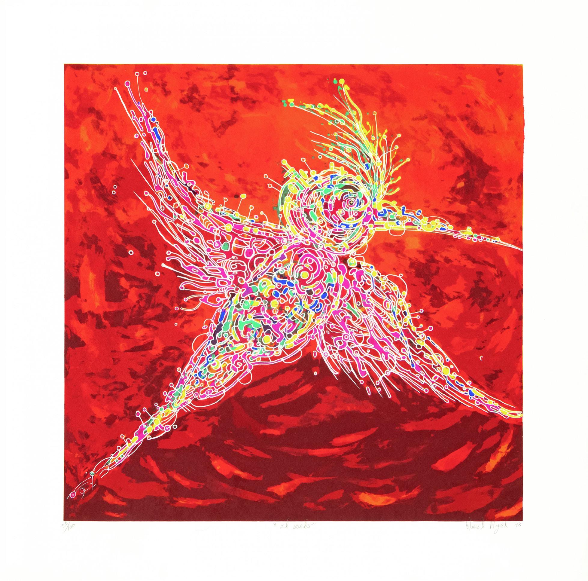 “VUELOS COMPARTIDOS” Grabado firmado y numerado con certificado 43 x 37 cm (con marco) Galería Querétaro
