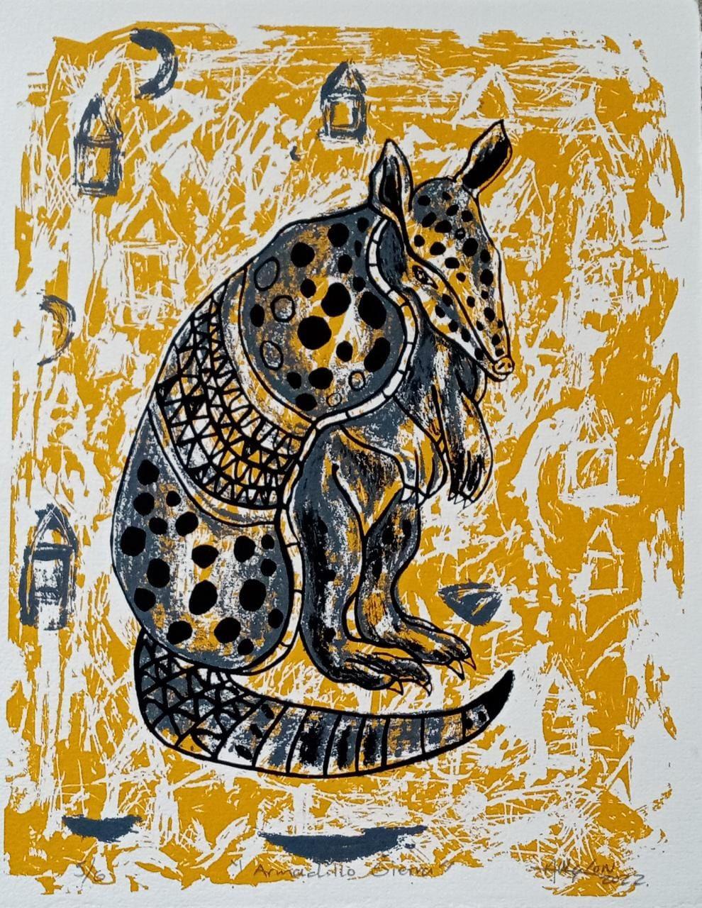 Cuauhtémoc Angón Sánchez “ARMADILLO SIERRA” Serigrafía a 2 tintas sobre papel algodón firmada y numerada con certificado 50 x 43 cm (con marco) Galería Querétaro