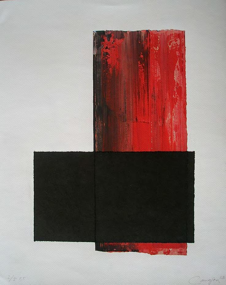Canogar “NEGRO/ROJO” Giclée y collage firmado con certificado 66 x 46 cm