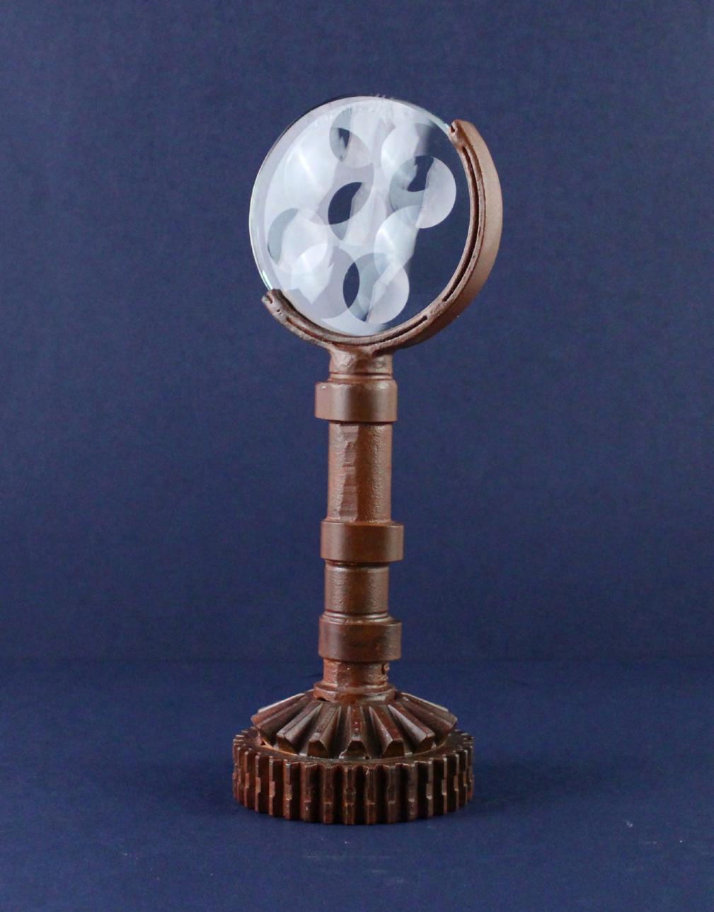 Escultura de acero y vidrio templado firmado con certificado 29 x 11 x 11 cm