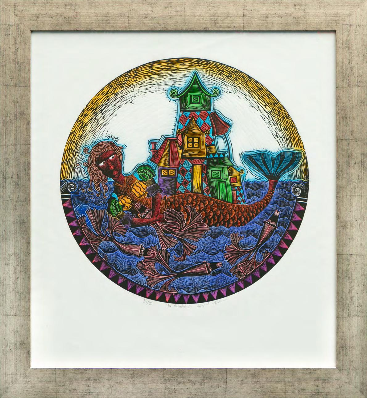 Xilografía firmado con certificado 105 x 85 cm (con marco)