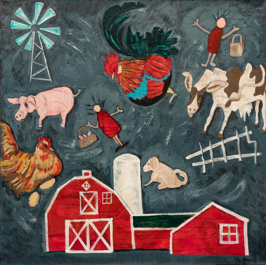 “DE LA SERIE: TEJIDOS INTERNOS (COLIBRÍ)” Mixta sobre lienzo con certificado de artista 62 x 62 cm (con marco)