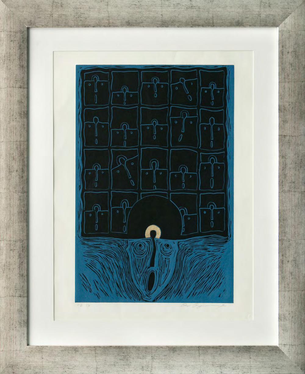 Xilografía firmada y numerada con certificado de artista. 64 x 85 cm (con marco)