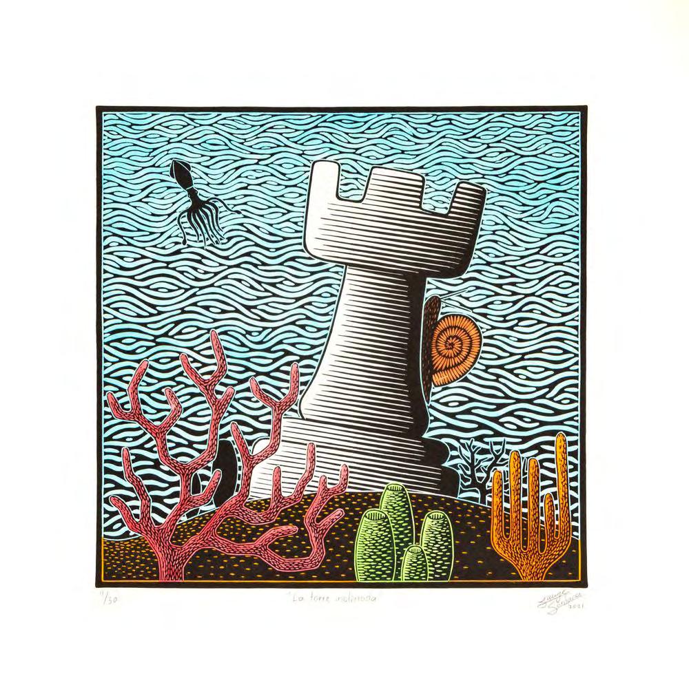 Linograbado, acuarela firmado y numerado con certificado 25 x 35 cm (sin marco)