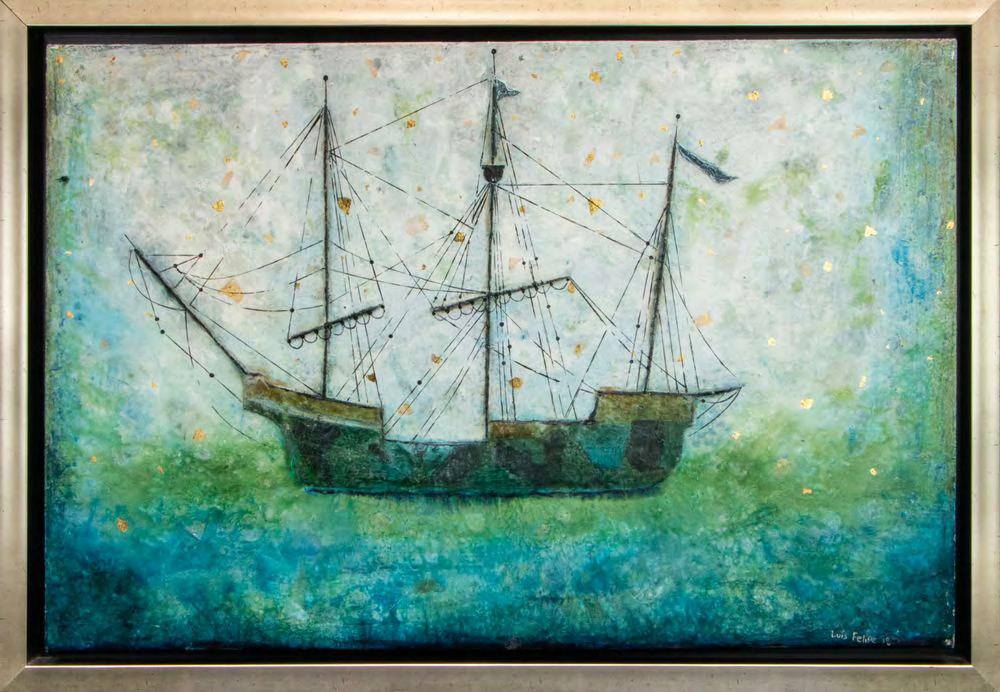 Óleo encausto y hoja de oro firmado con certificado 92 x 132 cm (con marco)