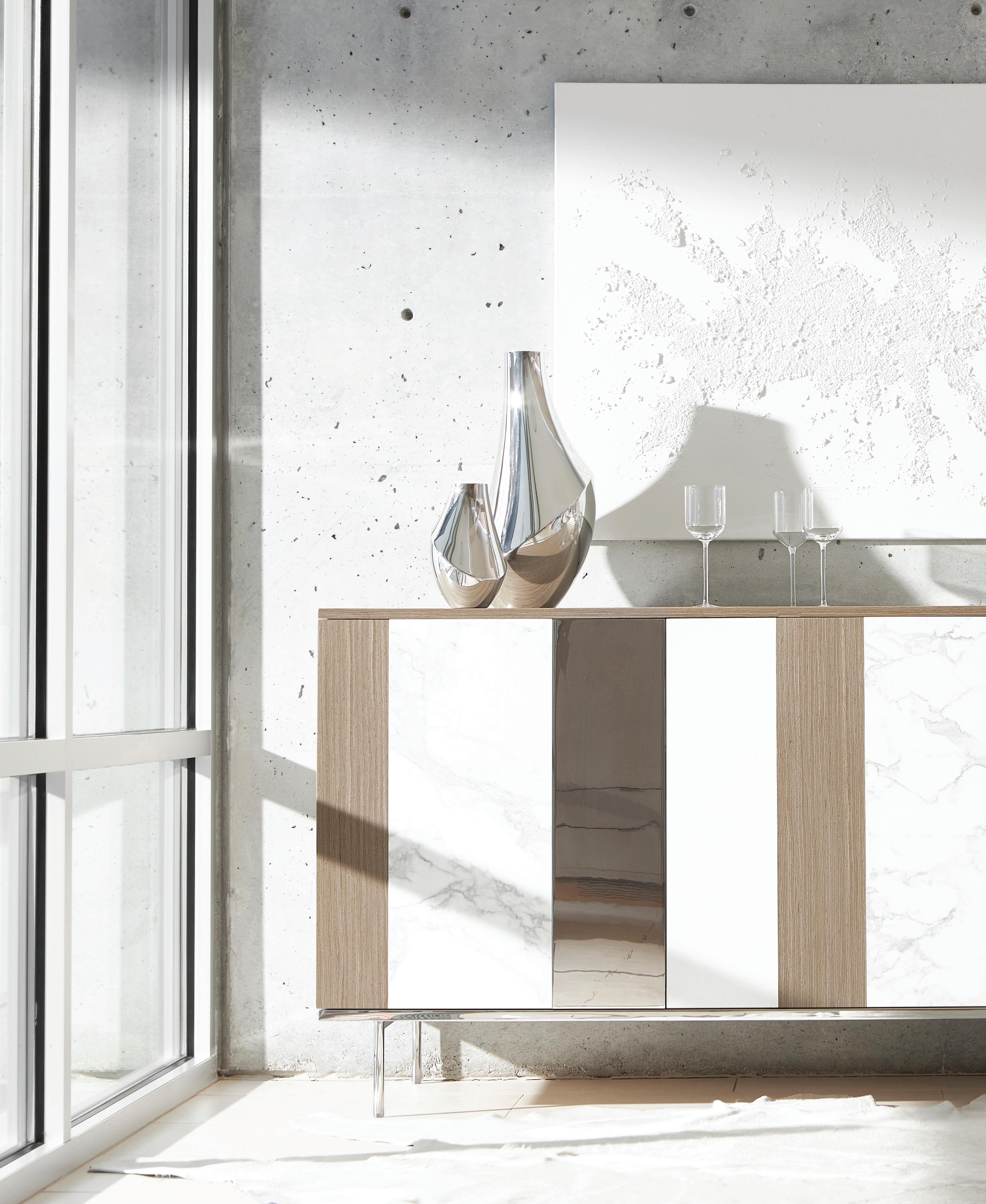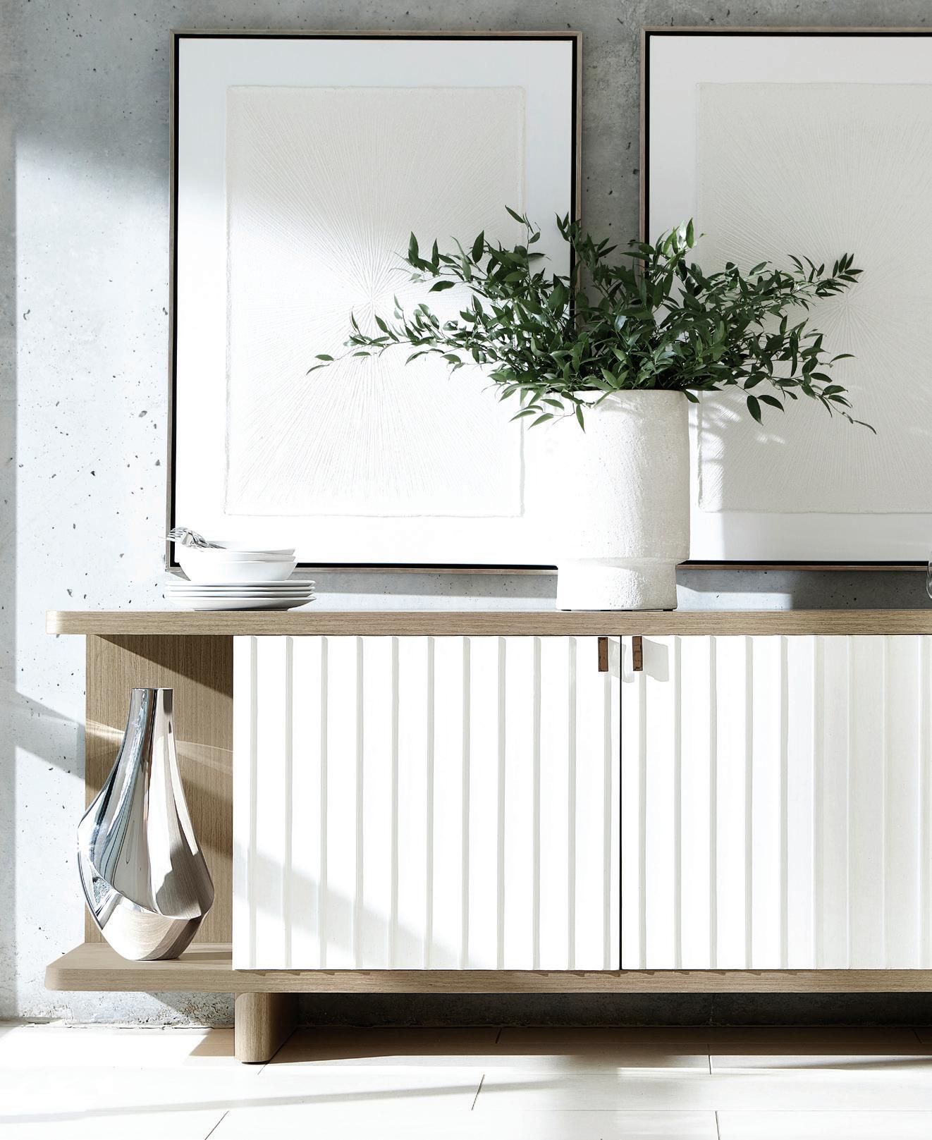 Building on the unique use of materials, form and intersecting planes, Modulum has a soft modern feel with chic, livable style. A sun-baked finish adds contrasting warmth and texture to smooth, semi-matte stone and shiny polished stainless steel. Minimalist forms and unadorned surfaces highlight the flawless beauty of geometric balance and sleek open frames, while fluted profiles have a hint of classicism. The collection is a study in juxtapositions, defined by layered material combinations and subtle drama. The look is relaxed and understated with clean lines, bright sophistication and a fresh, effortless appeal.