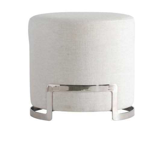 Fully upholstered round bench with circular shaped Polished Stainless Steel base. Rubber pad on bottom of base.