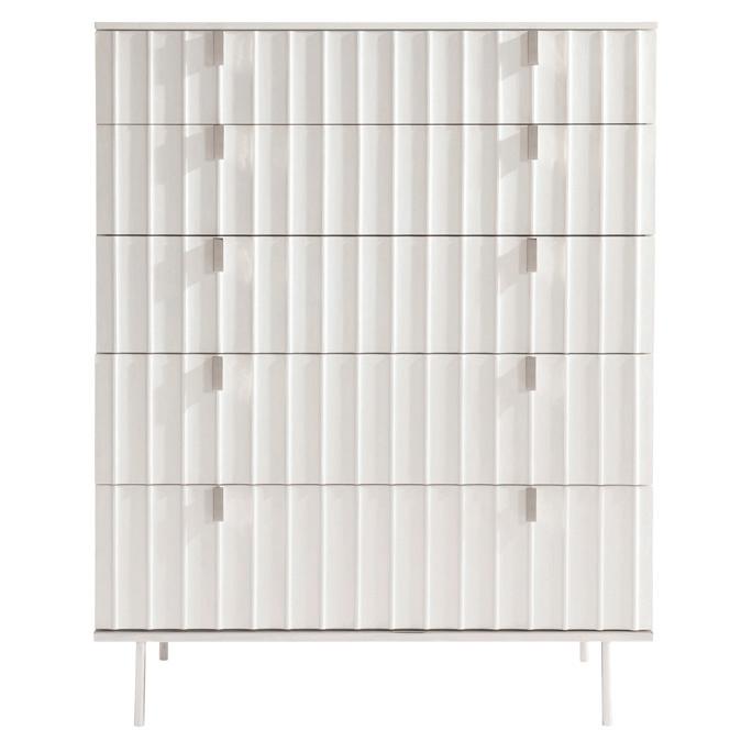 Adobe faux stone finish. Five soft-close drawers with fluted cast resin fronts. Polished Stainless Steel base. Anti-tip kit.