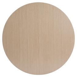 Sahara finish on veneered round top and base. Polished Stainless Steel pedestal. Felt pad on bottom.