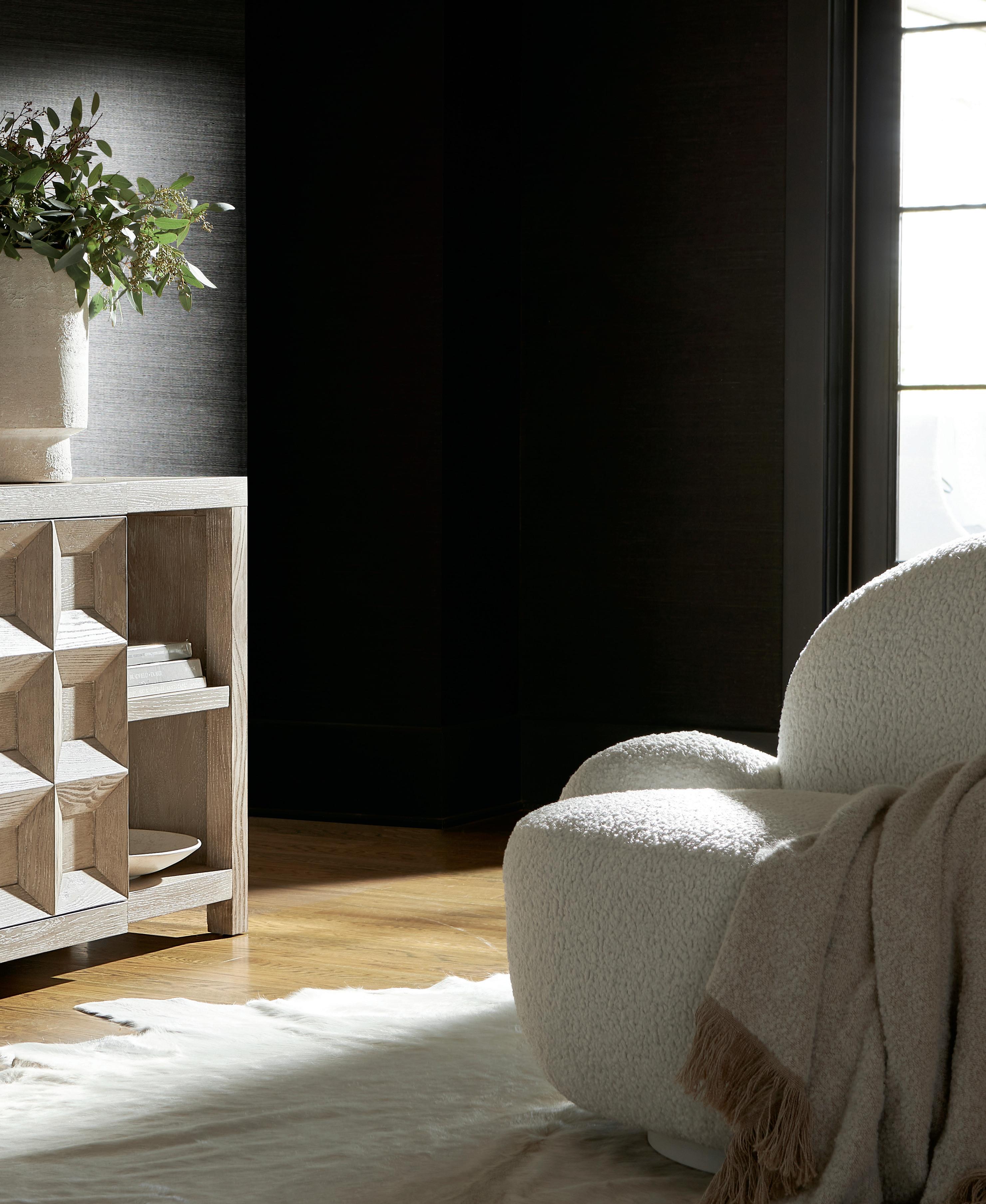 PAGES 22-23: 324890A Entertainment Credenza, N8202S St. Jean Swivel Chair.