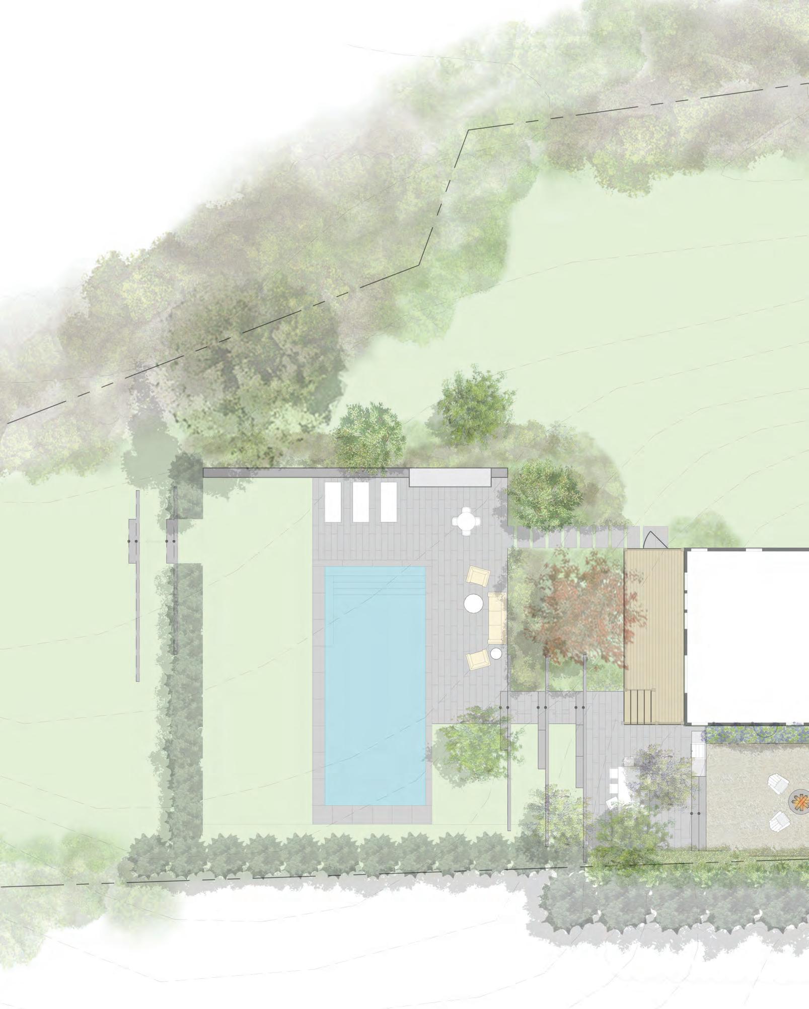 We continue to develop the landscape package, enriching the conceptual plan to include paving pattern studies, material options, lighting selection, and detailed revisions. Material samples and imagery are sourced for client review with additional sketches and renderings produced if needed.
