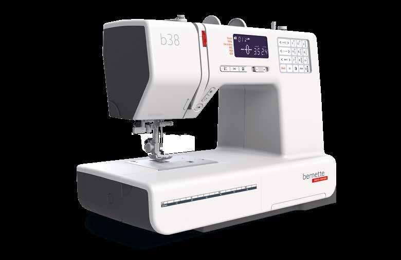 Počítačový model bernette 38 je špičkovým modelom série, ktorý ponúka všetko, čo kreatívni krajčíri potrebujú. Celkovo je k dispozícii 394 stehov vrátane 67 ozdobných stehov, 3 abecedy a 8 gombíkových dierok, ako aj praktické stehy, ako napríklad strečový steh pre pružné látky. Maximálna šírka stehu je 7 mm. Okrem praktických funkcií, ako je regulátor rýchlosti, štart/stop a zastavenie ihly hore/dole, má bernette 38 jasné LED svetlo na šitie, navliekač ihly a automatický a manuálny odstrih nite. Súčasťou je aj osem prítlačných pätiek a veľký predlžovací stôl.