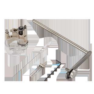 Overtransportøren understøtter transport af stoffet. Den er specielt velegnet til maskinquiltning af lige linjer og til den præcise sammensyning af dårligt glidende eller elastiske materialer, der har tendens til at forskubbe sig, eller som let bliver strakt. De to kantlinealer understøtter også et præcist arbejde.