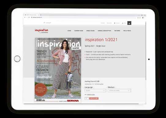 Are you looking for creative input? Do you want to find inspiration that suits you? Then our “inspiration” sewing magazine might be something for you! It provides great patterns and instructions for women's, children's and sometimes also men's fashion, as well as accessories, bags and home decoration ideas, such as cushions and table linens. All the patterns and instructions are available in the printed magazine or in the e-magazine that you can download and print at home. If you don't want an entire magazine, you can also just buy individual patterns to download.