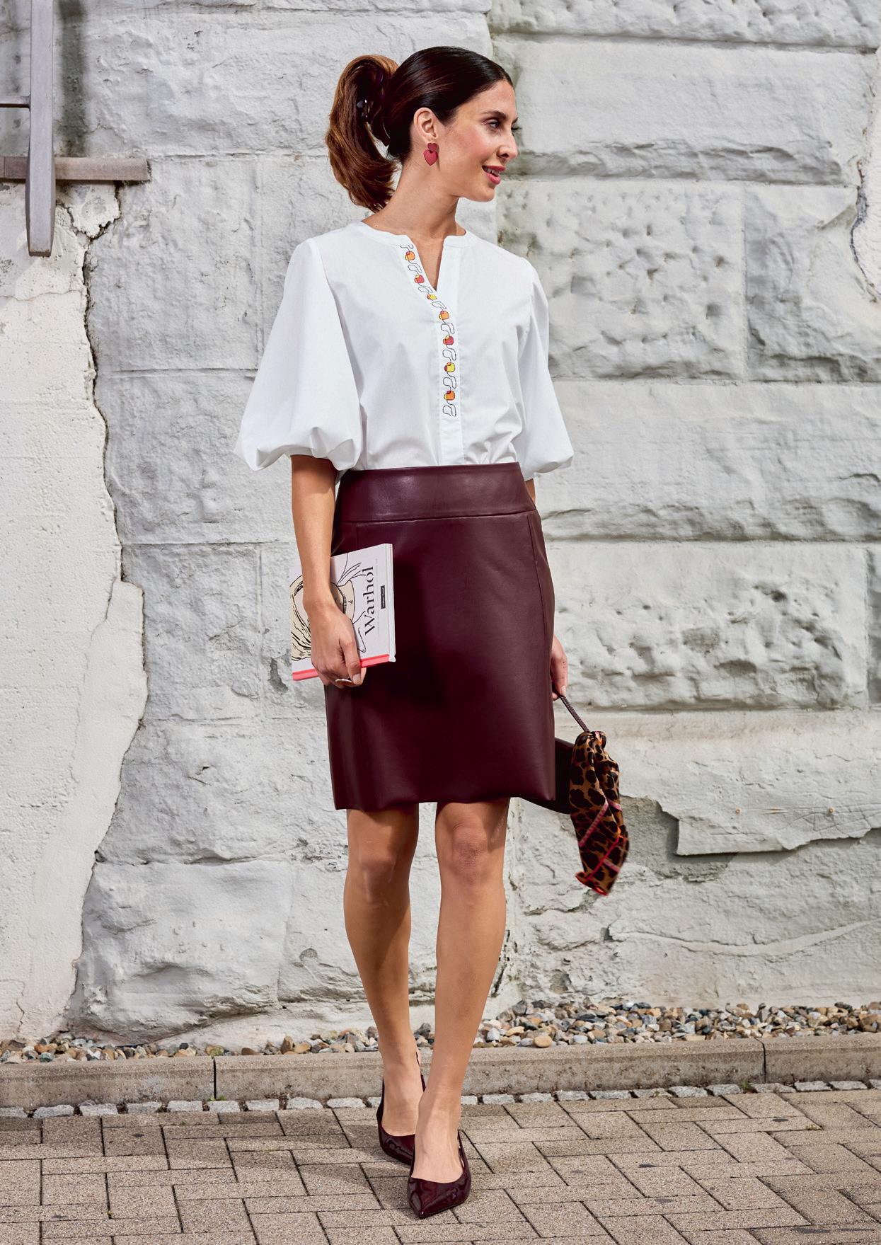 Der minimalistische Schnitt des Kunstlederrocks eignet sich für vielfältige Stylingoptionen. Ein Kombipartner – von casual bis schick!