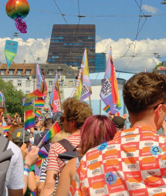 Parce que les droits qu’on a durement gagnés ne sont pas acquis pour de bon, même en Suisse. Les personnes queer sont encore victimes de discrimination, d’invisibilisation et d’inégalités juridiques. Et partout dans le monde, les libertés sont de plus en plus menacées par des lois transphobes, des attaques contre les personnes queer et des mouvements autoritaires. Notre réponse, c’est la solidarité et la résistance. On s’engage pour nous et pour tout le monde.