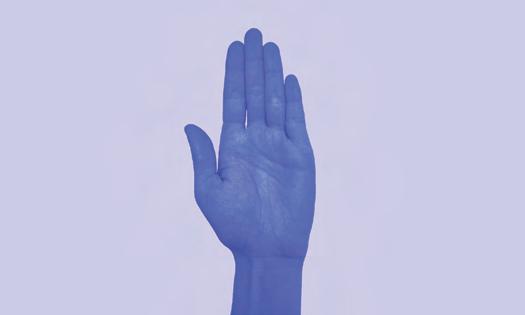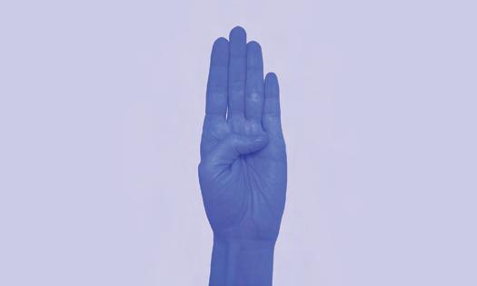 Présente-toi qu bqr de la BernPride, au stand d’information, au personnel de sécurité ou à tous les bénévoles ou utilise le signe de main suivant pour demander de l’aide si tu as besoin de soutien: