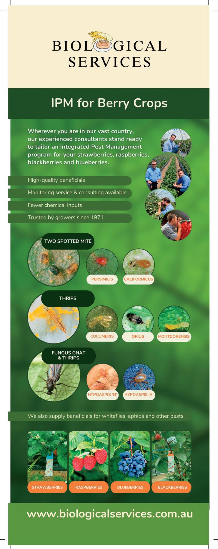 Berries Australia will be contributing to the review, and we welcome any comments from our members. Finally, it is AGM time again in October and all the details of the Association meetings can be found online at the Events calendar bit.ly/BA-Event-List. Please register to attend the meetings of interest to you.